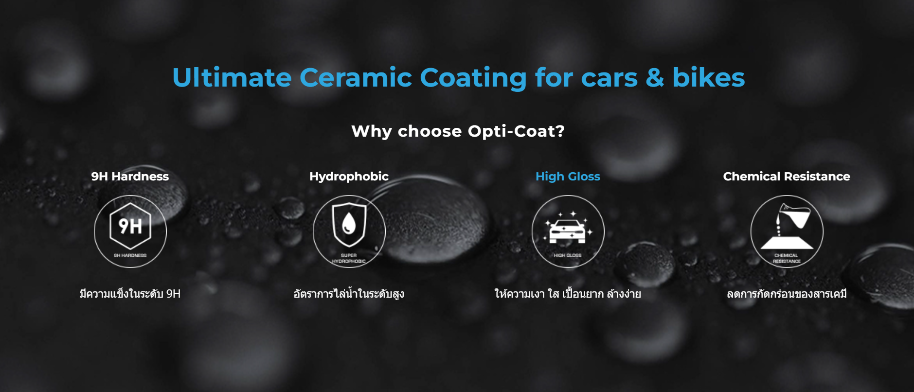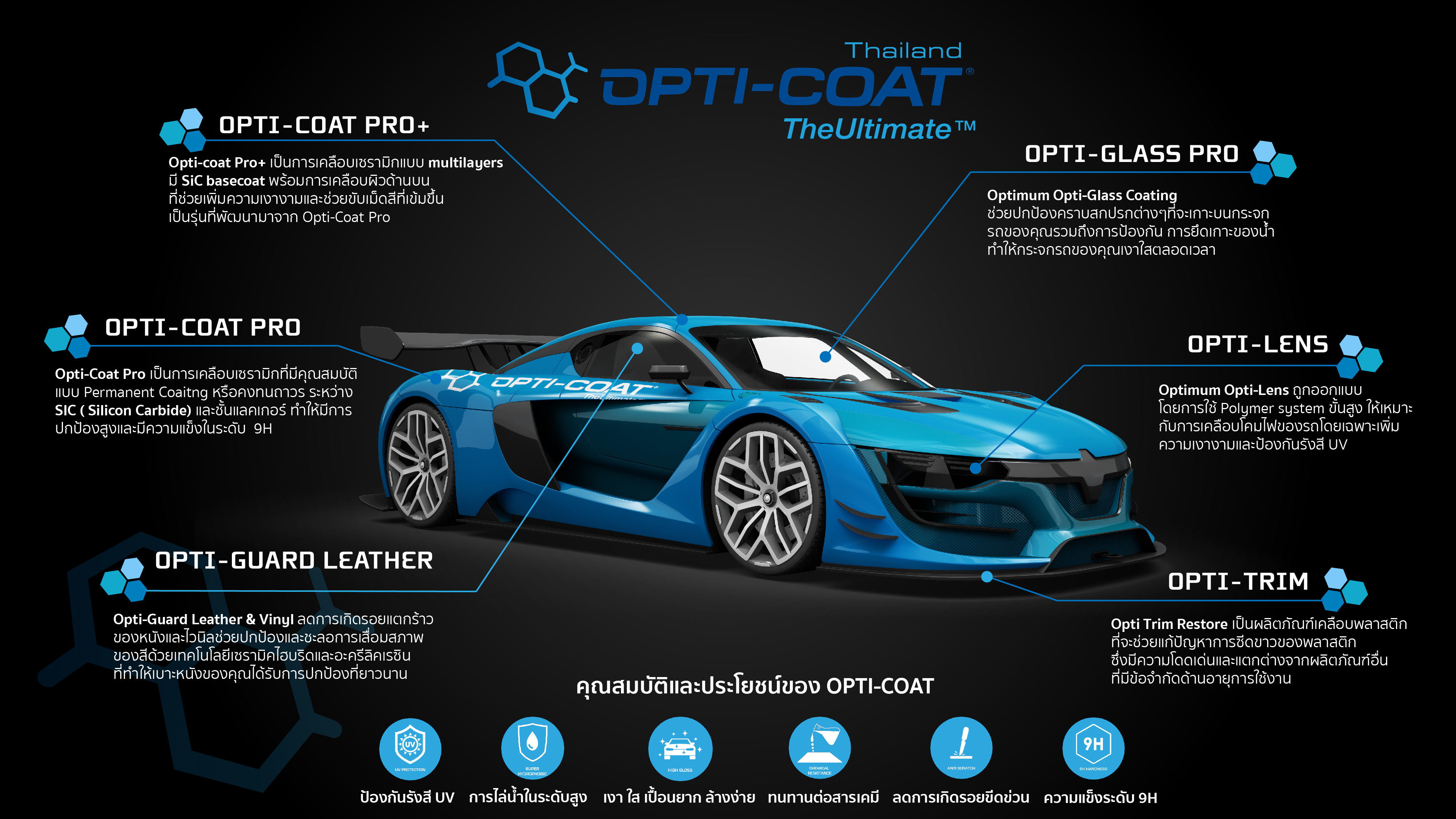 Opti-Coat หนึ่งในผลิตภัณฑ์ดูแลและปกป้องผิวรถยนต์ ภายใต้แบรนด์ระดับโลกอย่าง Optimum Polymer Technologies ที่มีผลิตภัณฑ์ทำความสะอาด ดูแลรักษา และเคลือบแก้ว เคลือบเซรามิก Car Washing, Car Detailing and Car Coating แบบเต็มระบบจากประเทศสหรัฐอเมริกา.
